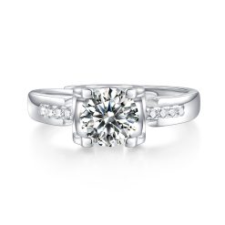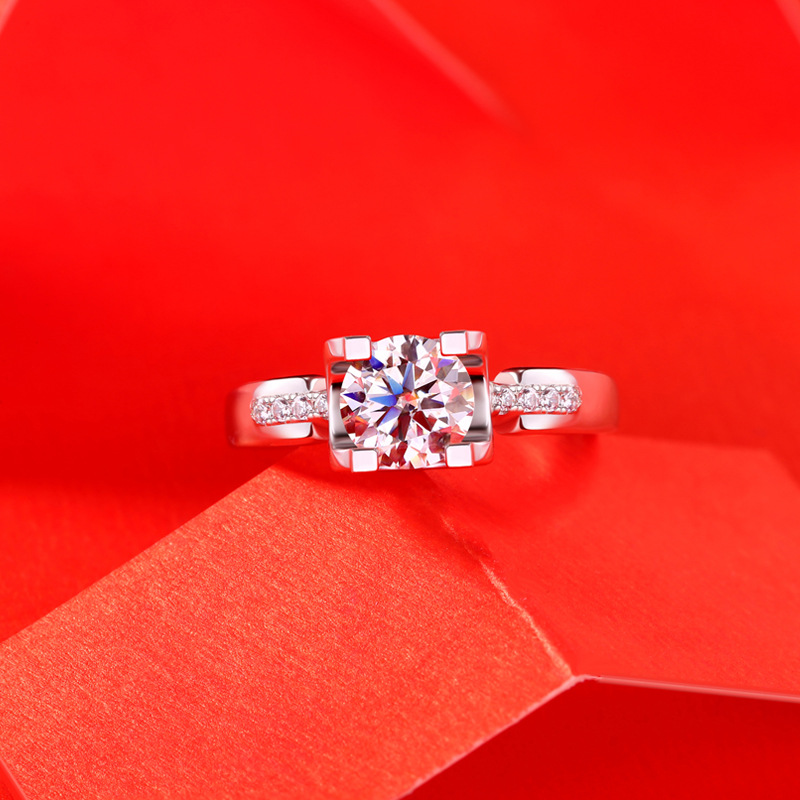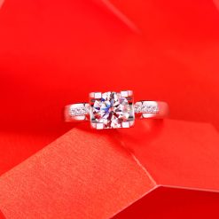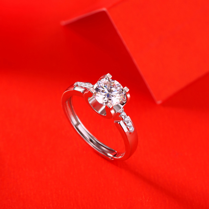 Lady 1ct Four Claw Moissanite CZ 925 Sterling Silver Adjustable Ring