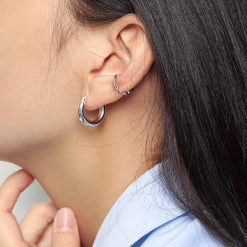Minimalism Geometry Mini Circles 925 Sterling Silver Huggie Hoop Earrings
