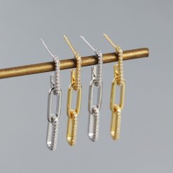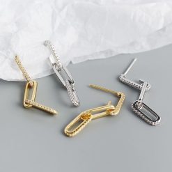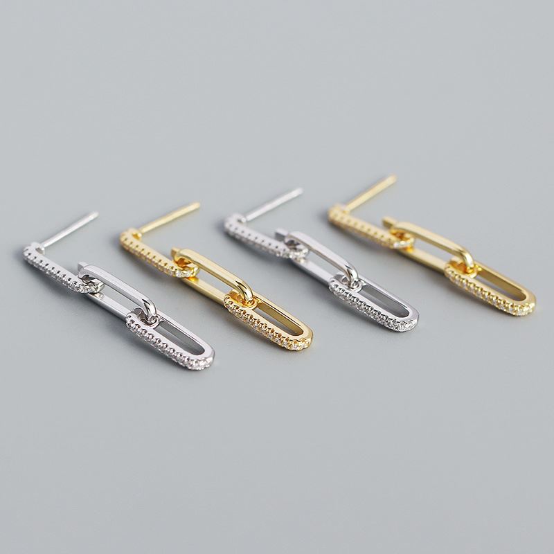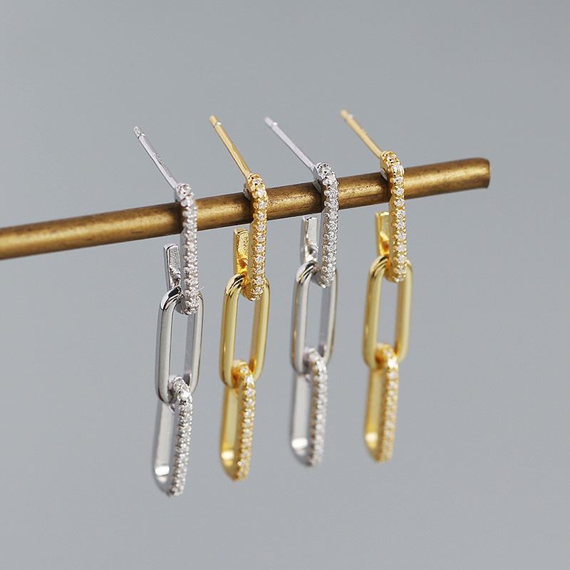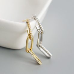 Office CZ Hollow Chain 925 Sterling Silver Dangling Earrings