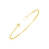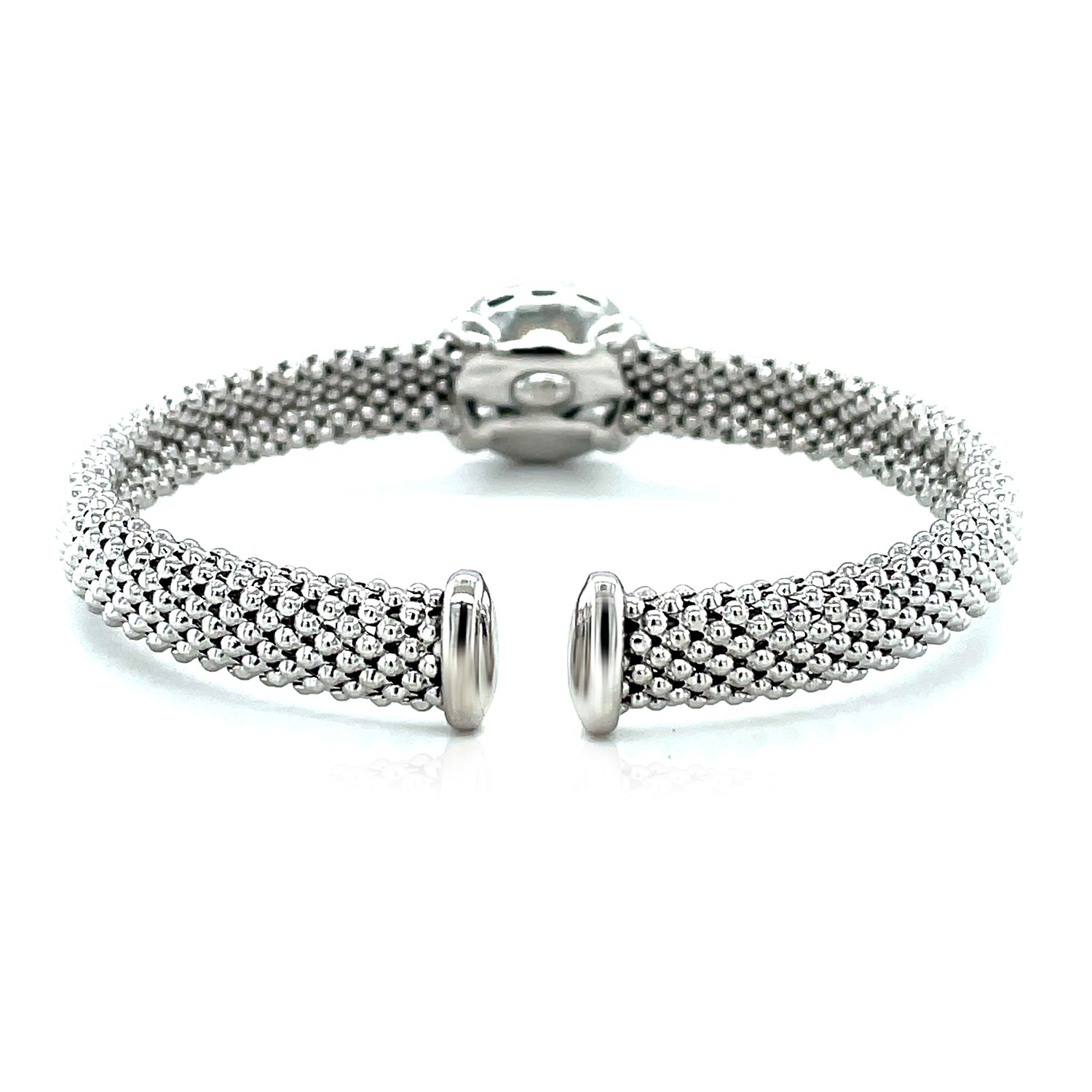 Beautiful diamonds and popcorn texture surround an eye-catching blue topaz in this sterling silver cuff bangle.