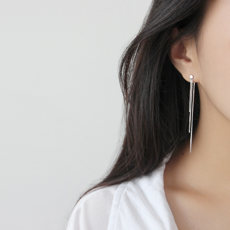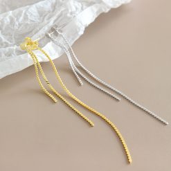 Simple Beads 925 Sterling Silver Long Dangling Earrings