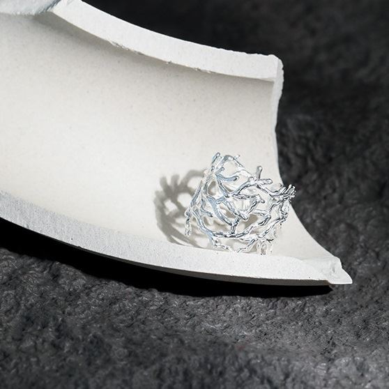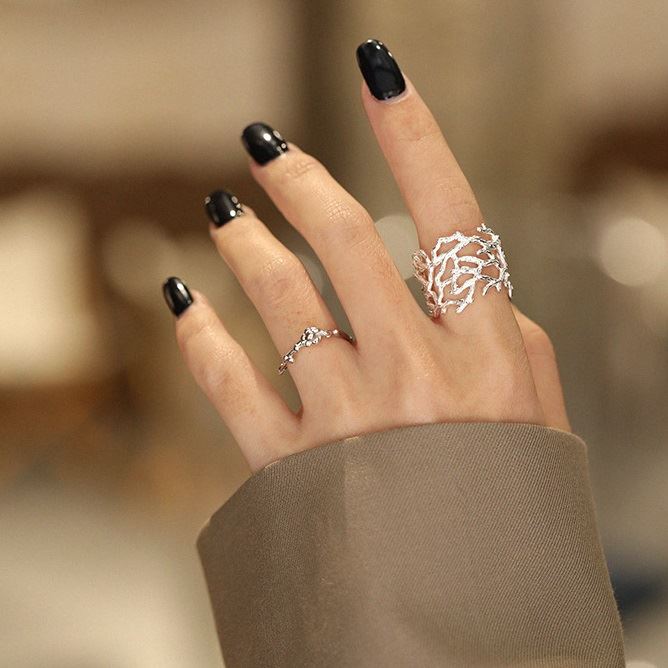 Simple Wide Branch Texture 925 Sterling Silver Adjustable Ring