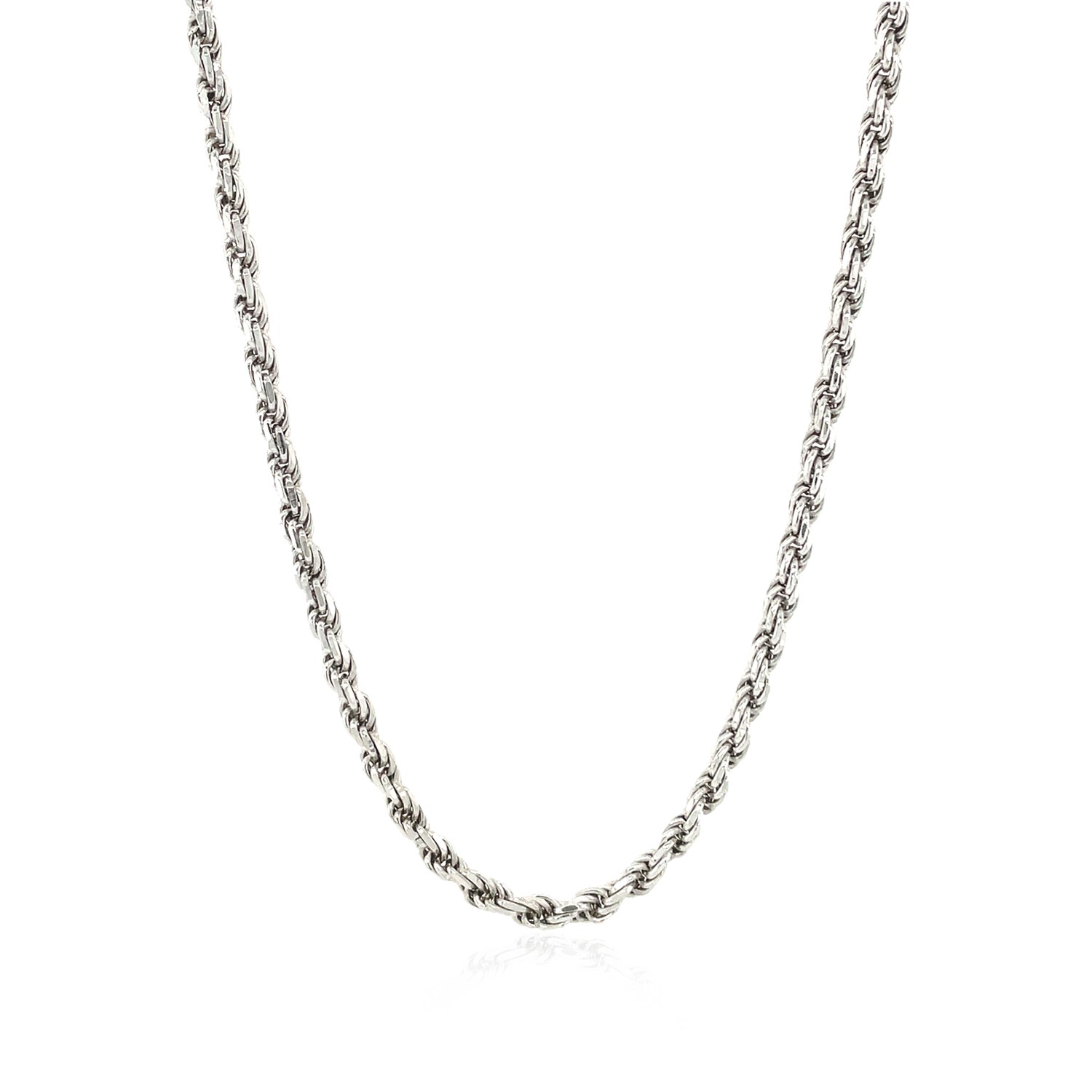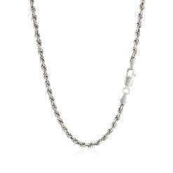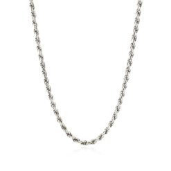 This classic chain is crafted in gleaming sterling silver with rhodium polish. Featuring a diamond cut rope type design&44; it has a width of 2.9 millimeters and is secured with a lobster clasp.