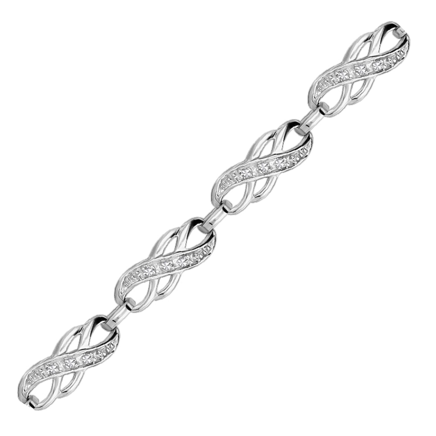 Diamond-embellished infinity style links highlight the splendid style of this sterling silver bracelet. Secured with a classic lobster clasp and measures 7 1/4 inches.