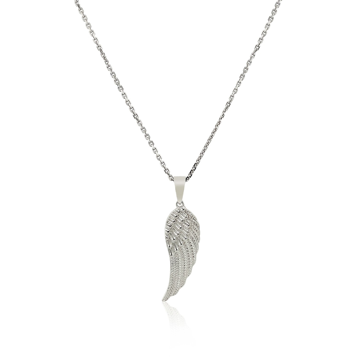 Bold and inspiring&44; this wonderful sterling silver pendant is graced by a single fluttering angel wing with beautiful textured details. Pendant is 18 inches long and closes with a lobster clasp.