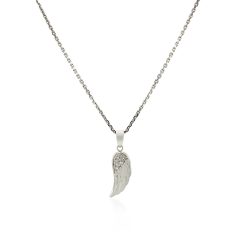 A glorious textured angel wing pendant flutters beautifully on this unique sterling silver pendant. Pendant is 18 inches long and closes with a lobster clasp.