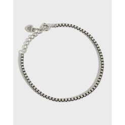 Vintage Box Chain Simple 925 Sterling Silver Bracelet