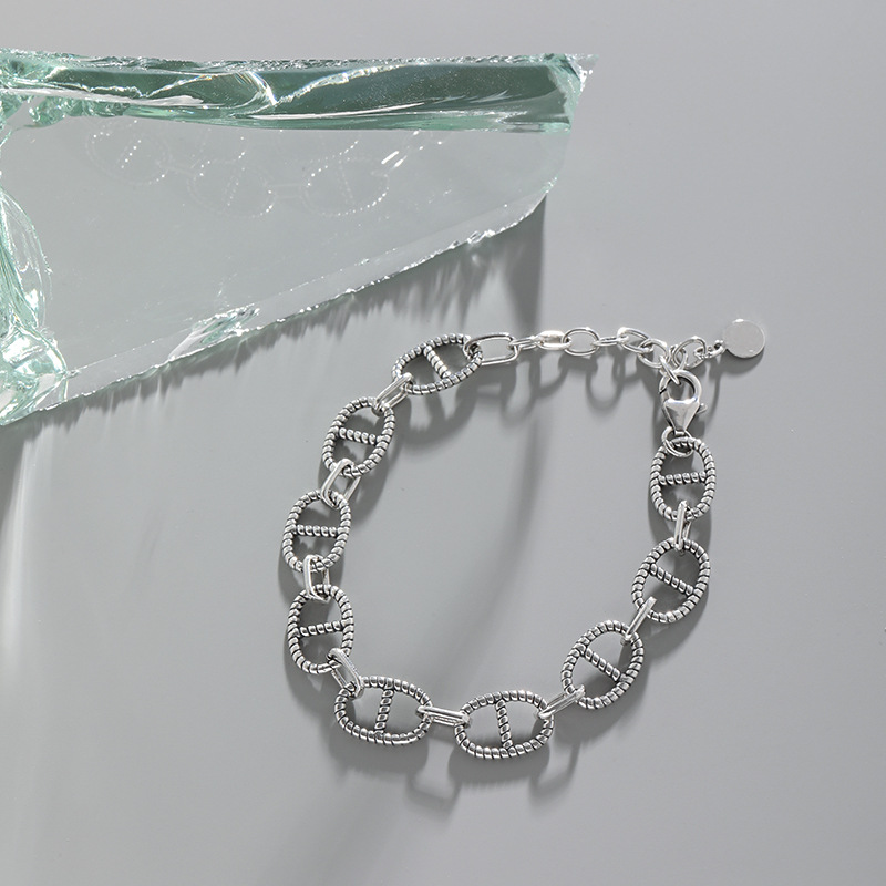 Vintage Flat Marina Chain 925 Sterling Silver Bracelet
