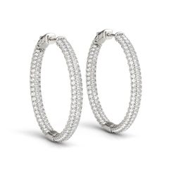 14k White Gold Two Row Pave Set Diamond Hoop Earrings (7 cttw)