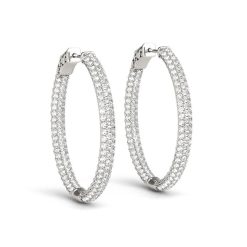14k White Gold Diamond Hoop Earrings with Shared Prong Setting (2 cttw)