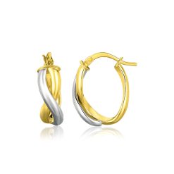 14k Two Tone Gold Oval Twisted Hoop Earrings