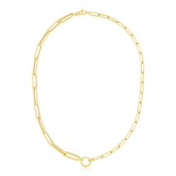14k Yellow Gold High Polish Elongated Paperclip Chain Circle Necklace
