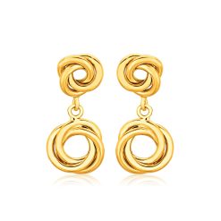 14k Yellow Gold Love Knot Stud Earrings with Drops