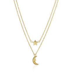 14k Yellow Gold Double-Strand Chain Necklace with Puff Moon and Star