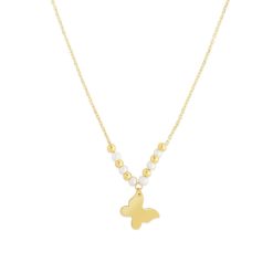 14k Yellow Gold High Polish Beaded Pearl Butterfly Drop Pallina Necklace