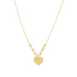 14k Yellow Gold High Polish Beaded Pearl Heart Drop Pallina Necklace