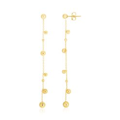 14K Yellow Gold High Polish Beaded Drop Earrings